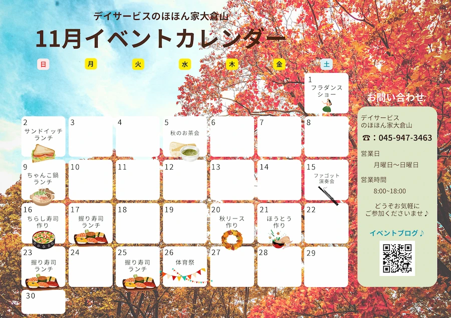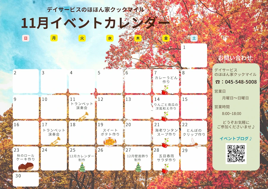 こちらのページでは2025年11月度のイベント情報を「大倉山」「クックマイル」で分けてまとめています。