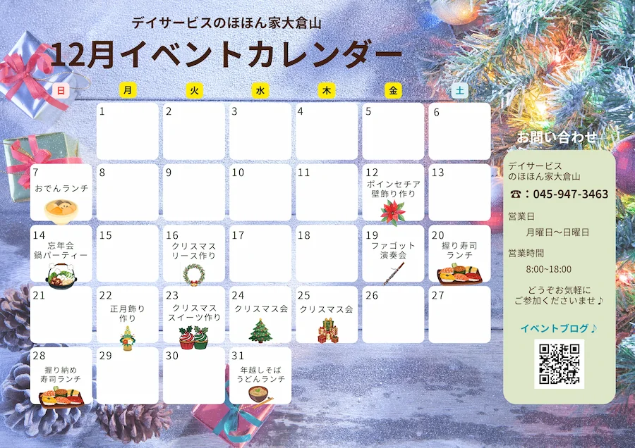 【イベント告知】2025年12月デイサービスのほほん家大倉山・クックマイル