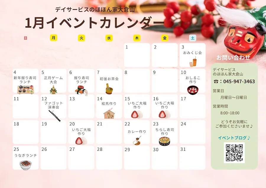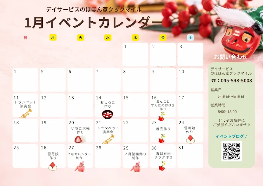 こちらのページでは2026年1月度のイベント情報を「大倉山」「クックマイル」で分けてまとめています。