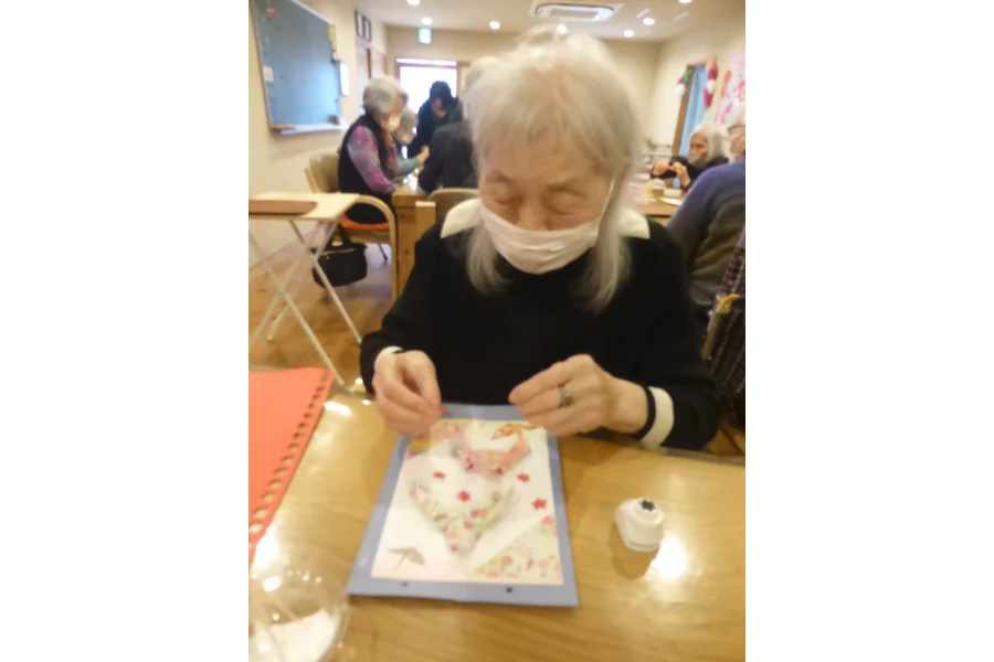 折り紙工作もひと工夫、ひと手間加えることで華やかな作品に仕上がり、完成すると達成感に満ち溢れていらっしゃいました。